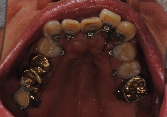 | Fig. 3: 54¼¼ ³²ÀÚ, ÀÌ È¯ÀÚ´Â ¼³Ãø±³Á¤Ä¡·á ÁßÀε¥ ³À̵µ¿¡ µû¶ó¼ Åõ¸í ±³Á¤Ä¡·á ¹æ¹ýÀ¸·Î ÇØ°áÇÒ ¼ö ÀÖ´Â Áõ·Êµµ ÀûÁö ¾Ê´Ù. |