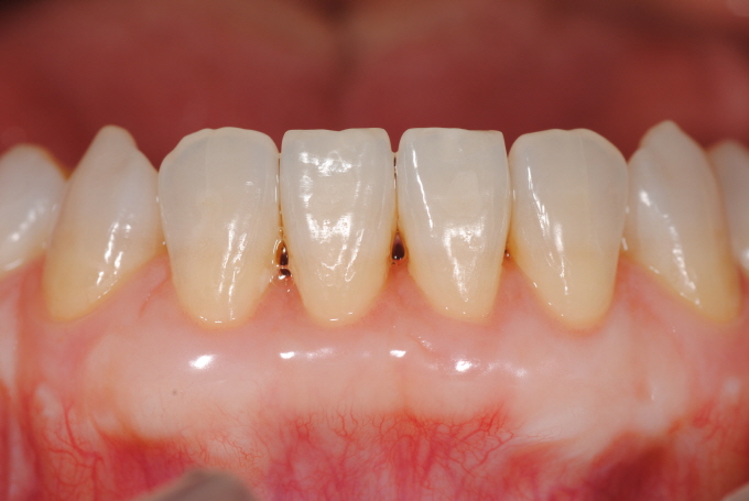 | Fig. 4&5&6: 48¼¼ ¿©ÀÚ, ¿À·£ ½Ã°£À» µé¿©¼ ±³Á¤Ä¡·á¿Í º¸Ã¶Ä¡·á¸¦ ÀüºÎ ¸¶Ãưí, ³²¾ÆÀÖ´ø Marginal migration of gum tissue with hypersensitivity ¹®Á¦¸¦ Subepithelial C.T. graft procedures ·Î¼ Àß ÇØ°áÇÒ ¼ö ÀÖ¾ú´Ù. 2016³â 1¿ù¤·ÀÏ ÇϾÇÁÂÃø Á¦ 2 ´ë±¸Ä¡ ¼³Ãø ±×¸®°í »ó¾ÇÁÂÃø Á¦ 1 ¼Ò±¸Ä¡¿¡ ´ëÇÏ¿© MG plastic surgery¸¦ ÇÏ¿´°í, ÀÌ¾î¼ 2¿ù¤·ÀÏ ÇϾÇÀüÄ¡ºÎ |