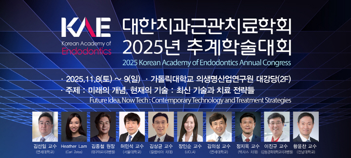 À̹ø Çмú´ëȸ´Â Ä¡Çù º¸¼ö±³À° 4Á¡ÀÌ ÀÎÁ¤µÇ¸ç »çÀü µî·ÏÀº 2025³â 11¿ù 1ÀÏ(Åä)±îÁö °¡´ÉÇÏ´Ù. ¼¼ºÎ »çÇ×Àº ÇÐȸ ȨÆäÀÌÁö(https://www.endodontics.or.kr)¿¡¼ È®ÀÎÇÒ ¼ö ÀÖ´Ù.