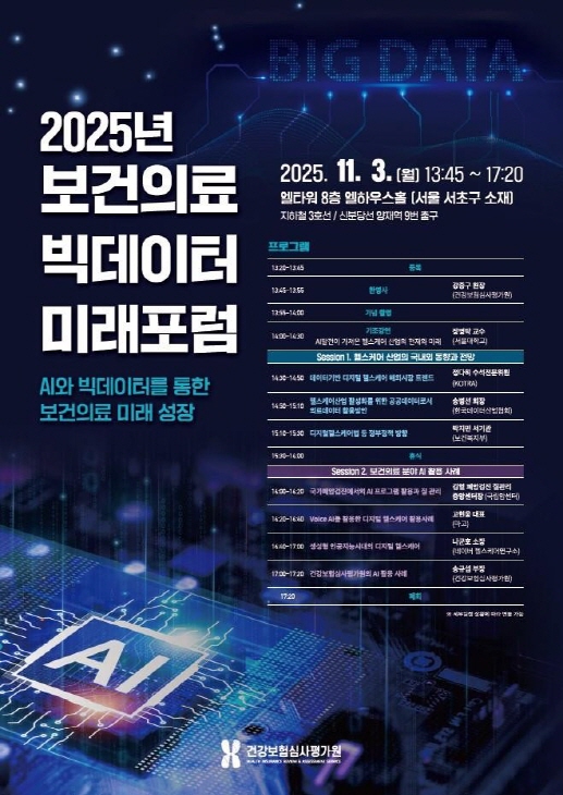 À̹ø Æ÷·³Àº¡®AI¿Í ºòµ¥ÀÌÅ͸¦ ÅëÇÑ º¸°ÇÀÇ·á ¹Ì·¡ ¼ºÀ塯À» ÁÖÁ¦·Î, AI ±â¼ú°ú º¸°ÇÀÇ·á µ¥ÀÌÅͰ¡ ÁÖµµÇÒ »ê¾÷ º¯È¿Í ¹Ì·¡ ¹æÇâÀ» ¸ð»öÇϱâ À§ÇØ ¸¶·ÃµÆ´Ù.