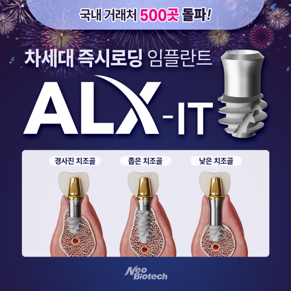 ³×¿ÀÀÇ ¡®ALX-IT¡¯´Â Â÷º°ÈµÈ µ¶Ã¢ÀûÀÎ ¹Ùµð µðÀÚÀΰú Ź¿ùÇÑ ¼º´ÉÀ¸·Î ½Ã¼ú ÆíÀǼºÀ» ³ô¿´À¸¸ç, NarrowÇÑ ÄÚ¾î¿Í Deep thread & Wide pitch¸¦ ÅëÇØ BIC(Bone to Implant Contact)¸¦ ±Ø´ëÈÇØ Áï½Ã·Îµù ¾ÈÁ¤¼ºÀ» ÃÖÀûÈÇÑ Â÷¼¼´ë ÀÓÇöõÆ®´Ù.