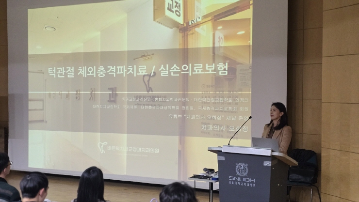¶ÇÇÑ Ä¡°ú±³Á¤°ú Àü¹®ÀÇÀÎ Ä¡°úÀÇ»ç·Î¼ ´ëÇÑÃæ°ÝÆÄÀç»ýÀÇÇÐȸ ¹× ±¹Á¦Ãæ°ÝÆÄÄ¡·áÇÐȸÀÇ Á¤È¸¿øÀÌÀÚ Ä¡°ú°è ÃÖÃÊ·Î ½ºÅçÁî ÁýÁßÇü ü¿ÜÃæ°ÝÆÄ Àåºñ¸¦ µµÀÔÇØ ¾Ç¾È¸é ¹× µÎ°æºÎ ÅëÁõ ¹× ¹Ì¿ë ¸ñÀûÀÇ Àç»ýÄ¡·á¸¦ ½Ã¼úÁßÀÎ ¿ÀÈñÁ¤¿øÀå(¼¿ï ¹Ù¸¥ÅÎÄ¡°ú±³Á¤°úÄ¡°ú)ÀÌ Ã¼¿ÜÃæ°ÝÆÄÄ¡·á (ESWT)ÀÇ ÀÌ·Ð ¹× ÀÓ»ó¿¡ ´ëÇØ »ó¼¼È÷ °ÀǸ¦ Çϸç Å« °ü½ÉÀ» ²ø¾ú´Ù. ¶ÇÇÑ ÇÕ¹ý ºñ±Þ¿© ÅΰüÀý Áõ½ÄÄ¡·á, ÃֽŠPDRN Ç׿°Àç»ý ÁÖ»ç¿ä¹ýÀÇ ½Ç¼Õº¸Çè û±¸¹æ¹ý¿¡ ´ëÇØ »ó¼¼È÷ °ÀÇÇϸç Ä¡°ú º´¡¤ÀÇ¿ø °æ¿µ¿¡ Å©°Ô µµ¿òÀÌ µÇ´Â ÃֽŠÁ¤º¸¸¦ Á¦°øÇß´Ù.