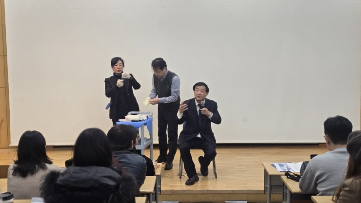 Á¤±Ô °Àǰ¡ ¸ðµÎ ³¡³ ÈÄ¿¡´Â ÅΰüÀýÀå¾Ö ±³À°¿¬±¸È¸ ÀÓ»óÁöµµÀÇÀÌÀÚ ÃÖ±Ù Ä¡°ú¹Ì¿ë½Ã¼úÀÇ ÀÏŸ°»çÀÎ ³²Áø¿ì¿øÀå(³²¾çÁÖ ¼¿ïžġ°ú) ¿øÀåÀÌ ±è¿í¿øÀåÀ» ´ë»óÀ¸·Î Àüü ¾È¸é ¹Ì¿ë ¸ñÀûÀÇ º¸Åø¸®´®Åå½Å ÁÖ»ç¿ä¹ýÀ» ½Ã¼úÇÏ¸ç ¼ö°»ýµéÀÇ Å« °ü½ÉÀ» ²ø¾ú´Ù. ¶ÇÇÑ ±è¿í¿øÀåÀÌ ¼ö°»ýµéÀ» ´ë»óÀ¸·Î À̰¥ÀÌ, ¸ñ, ¾î±ú ±Ù¸·ÅëÁõ Ä¡·á ¸ñÀûÀÇ ±³±Ù, ÃøµÎ±Ù, ³»ÃøÀ͵¹±Ù, ½Â¸ð±Ù º¸Åø¸®´½Åå½Å ÁÖ»ç¿ä¹ýÀ» ½Ã¿¬Çß´Ù.