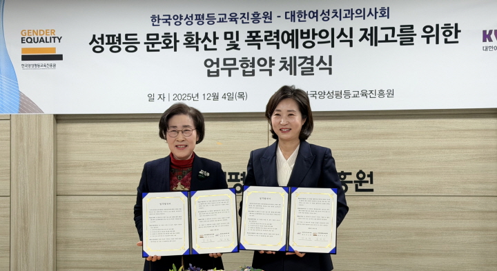 ´ëÇÑ¿©¼ºÄ¡°úÀÇ»çȸ(ȸÀå Àå¼ÒÈñ)°¡ Áö³ 4ÀÏ Çѱ¹¾ç¼ºÆòµî±³À°ÁøÈï¿ø(¿øÀå ±è»ïÈ)°ú ¼ºÆòµî ¹× Æø·Â ¿¹¹æ ÀÇ½Ä È®»êÀ» À§ÇÑ ¾÷¹«Çù¾à½ÄÀ» ÁøÇàÇß´Ù. Çѱ¹¾ç¼ºÆòµî±³À°ÁøÈï¿ø¿¡¼ ÁøÇàµÈ ÀÌ ³¯ Çù¾à½Ä¿¡´Â ´ë¿©Ä¡¿¡¼ Àå¼ÒÈñȸÀå ±è¼öÁø¼ö¼®ºÎȸÀå °ûÁ¤¹Î¿©¼ºÀαǼ¾ÅÍÀå ½ÅÁö¿¬Ãѹ«À̻簡 Âü¼®Çß´Ù.