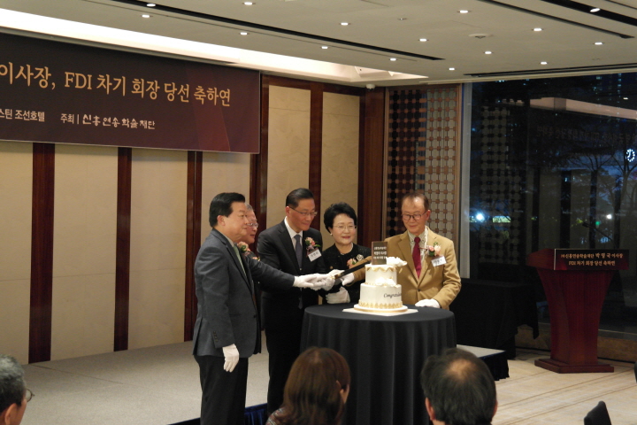 ¡®¹Ú¿µ±¹½ÅÈ↓¼ÛÇмúÀç´ÜÀÌ»çÀå FDI Â÷±âȸÀå ´ç¼± ÃàÇÏ¿¬¡¯ÀÌ Áö³ 19ÀÏ ½ÅÈï ÁÖÃÖ·Î Á¶¼±È£ÅÚ¿¡¼ ¿·È´Ù <»çÁø>.