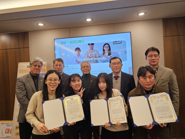 ´ë»óÀº ¼ôÆû ºÎ¹® ¡®¿ì¸®µéÀÇ ¹Ì¼Ò¸¦ ÁöÄÑÁÖ¼¼¿ä.¡¯°¡ Â÷ÁöÇßÀ¸¸ç, »çȸÀû °úÁ¦¿¡ ´ëÇÑ ±íÀÌ ÀÖ´Â ÅëÂûÀ» ¿µ»óÀû Ç¥ÇöÀ¸·Î ¼³µæ·Â ÀÖ°Ô Àü´ÞÇϸç, ¸Þ½ÃÁöÀÇ Á߿伺°ú ¿¬ÃâÀÇ ¿Ï¼ºµµ°¡ ¿Ïº®ÇÑ Á¶È¸¦ ÀÌ·ç¾î °ø°¨À» °¡Àå È¿°úÀûÀ¸·Î À̲ø¾î³Â´Ù´Â Æò°¡¸¦ ¹Þ¾Ò´Ù. ÃÖ¿ì¼ö»óÀº ¼ôÆû ºÎ¹® ¡®½º¸¶ÀÏÀç´Ü ¼Ò°³¡¯À̸ç, ½º¸¶ÀÏÀç´ÜÀÇ Á¤Ã¼¼º°ú ¿ªÇÒ, Ȱµ¿ ³»¿ëÀ» ¸Å¿ì ÀÚ¿¬½º·´°Ô ³ì¿©³» ÀÛǰÀÇ ¿Ï¼ºµµ¸¦ ³ô¿´´Ù. ¸¶Áö¸·À¸·Î ¿ì¼ö»óÀº ±×¸² ºÎ¹®ÀÇ ¡®³Ñ¾î¾ß ÇÒ ¶Ç ´Ù¸¥ º®¡¯À̸ç, Àå¾ÖÀÎÀÇ ±¸° °Ç° Á¢±Ù¼º ¹®Á¦¸¦ ¡®º®¡¯À̶ó´Â »ó¡ÀûÀÎ À̹ÌÁö·Î ½Ã°¢ÈÇÏ¿© °ÇÑ ÀλóÀ» ÁÖ¾ú´Ù.