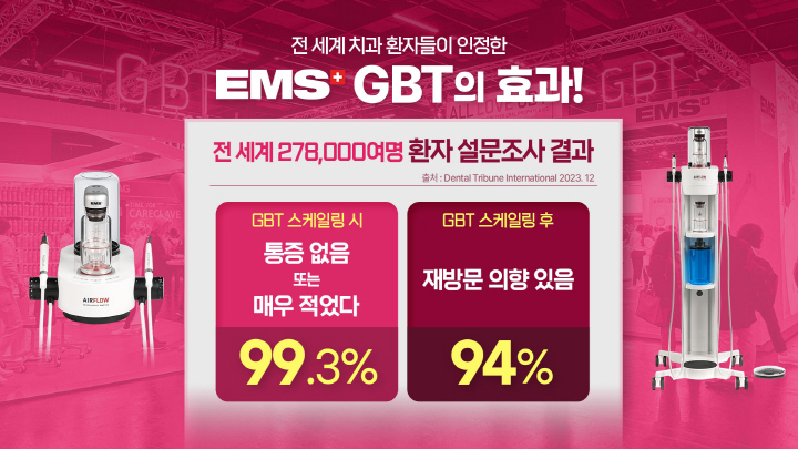 OSSTEM ¶óÀ̺ê¼î´Â ¿À´Â 27Àϰú 30ÀÏ ½ºÀ§½º ¸íǰ ½ºÄÉÀÏ·¯ ¡®EMS GBT¡¯(Guided Biofilm Therapy) ·ÐĪ ƯÁýÀ» ÁøÇàÇÑ´Ù°í ¹àÇû´Ù. ±¸° ÁúȯÀÇ Á÷Á¢ÀûÀÎ ¿øÀÎÀÌ µÇ´Â ¹ÙÀÌ¿ÀÇʸ§À» Á¦°ÅÇϰí, ¾ÆÇÁÁö ¾ÊÀº ½ºÄÉÀϸµÀ» ÅëÇØ Ä¡°ú ȯÀÚÀÇ Àç³»¿øÀ² Áõ°¡¿¡µµ ±â¿©ÇÒ ¼ö ÀÖ¾î ÀÏÂïºÎÅÍ °ü½ÉÀ» ¹Þ°í ÀÖ´Ù.