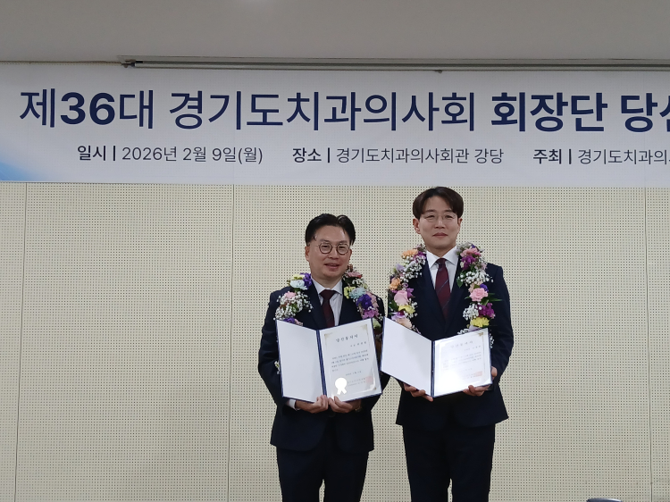| °æ±âµµÄ¡°úÀÇ»çȸ »õ ȸÀå¿¡ ´ç¼±µÈ À§Çöö(¿ÞÂÊ) ±è±¤Çö ȸÀå´ÜÀÌ ´ç¼±ÁõÀ» ¹Þ°í ±â»µÇϰí ÀÖ´Ù. |