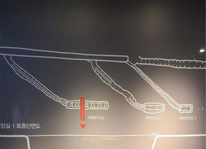 | µ¿¼ ¼®Ãà ¹è¼ö·Î ³²ÂÊ¿¡¼ ¹ß°ßµÈ ´ëÇü ÈÀå½Ç. À§¿¡ ÈÀå½ÇÀ» ÀçÇöÇÑ °Ç¹° µÎ ä¿Í ´ëÇü À¯¸®·Î µ¤¾î³õÀº ´ëÇü ÈÀå½Ç·Î ¸ðµÎ 3ä°¡ ¹ß°ßµÇ¾ú´Ù. |