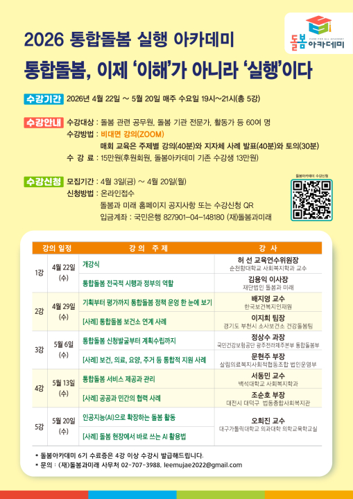 (Àç)µ¹º½°ú ¹Ì·¡(ÀÌ»çÀå ±è¿ëÀÍ)ÀÌ ¡®µ¹º½ÅëÇÕÁö¿ø¹ý¡¯ ½ÃÇàÀ» °è±â·Î, ÅëÇÕµ¹º½ÀÇ ÇöÀå ½ÇÇà ¿ª·® °È¸¦ À§ÇÑ ¡®2026 ÅëÇÕµ¹º½ ½ÇÇà ¾ÆÄ«µ¥¹Ì¡¯¸¦ ¿î¿µÇÑ´Ù.
